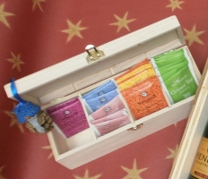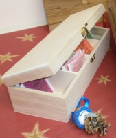 Another example is a tea box with 4 compartments for different types of tea. The surface is rough, so it is also well suited to be personally designed and decorated. Ideal for advent craft time or as a Christmas gift!