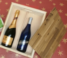 retail shop, for example a wine box for 2 bottles in Stepwood® design in various types of wood.